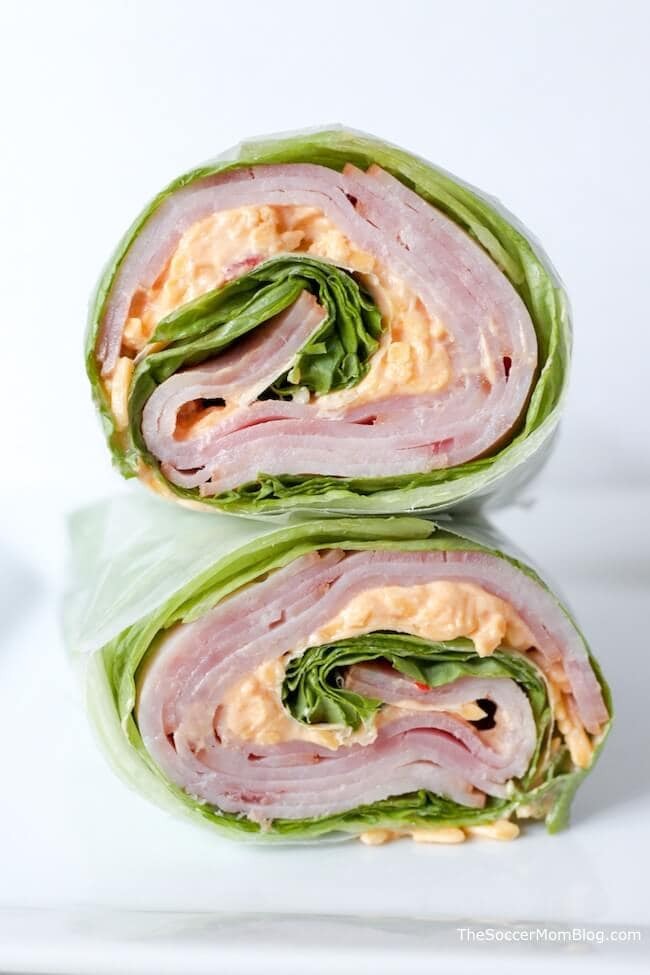 Crisp lettuce, sweet honey ham, and creamy pimento cheese, these Keto Ham and Pimento Cheese Wraps are the perfect fresh and easy lunch for spring and summer.