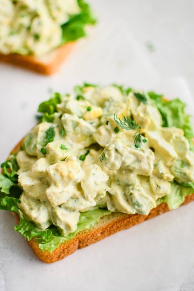 This super easy Avocado Egg Salad is a fun and flavorful twist on regular egg salad! Made with just 6 ingredients, it has just the right amount of tanginess and the most irresistible, ultra-creamy texture!