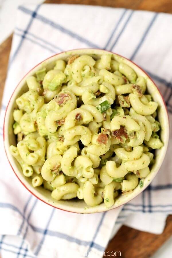 A hearty and flavorful pasta salad made with avocado buttermilk dressing…and bacon! It’s a new favorite dish in our family!