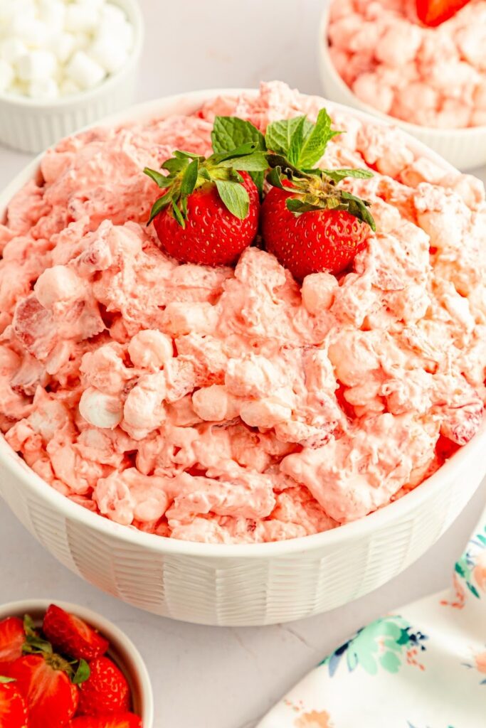 Strawberry Fluff Salad is a potluck classic that is loaded with strawberry jello, vanilla pudding, Cool Whip, and FRESH strawberries.