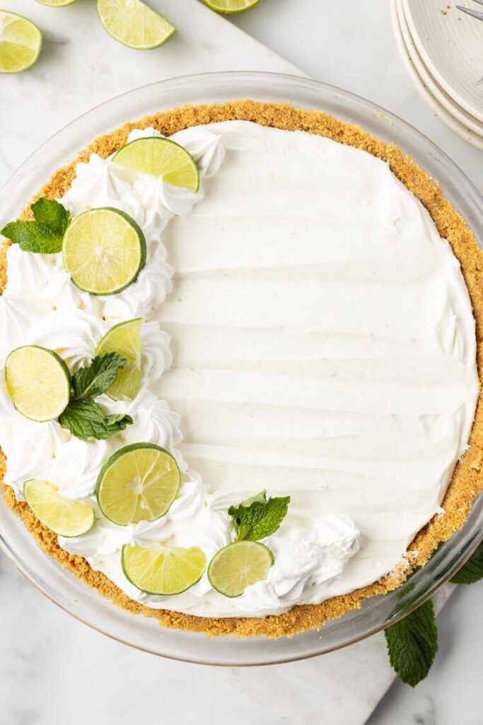 The tart dessert has a tangy lime flavor that is balanced by the creamy sweetness for a perfectly refreshing treat. This No Bake Key Lime Pie is as good as a traditional Key Lime Pie except this no bake pie can be ready to eat much faster because it’s a no bake version.
