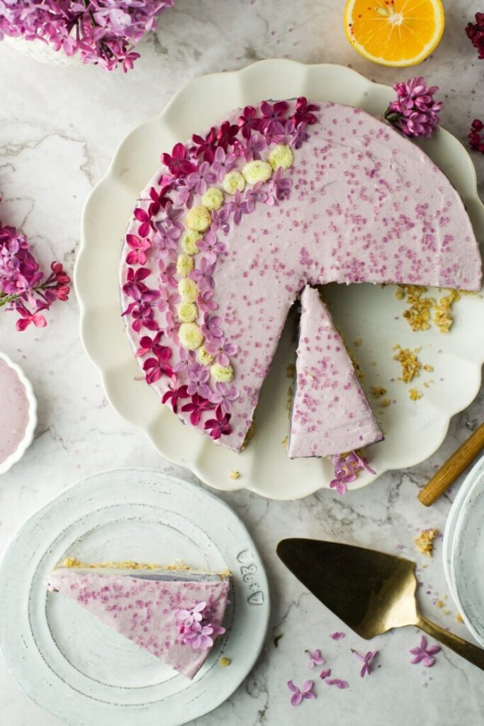 This no-bake lilac cheesecake is a creamy, floral, raw dessert that’s gluten-free, dairy-free, and vegan. Made with lilac blossoms, cashews, and coconut cream, it’s a beautiful spring treat for foraging lovers and fans of healthy, no-bake cheesecake recipes.